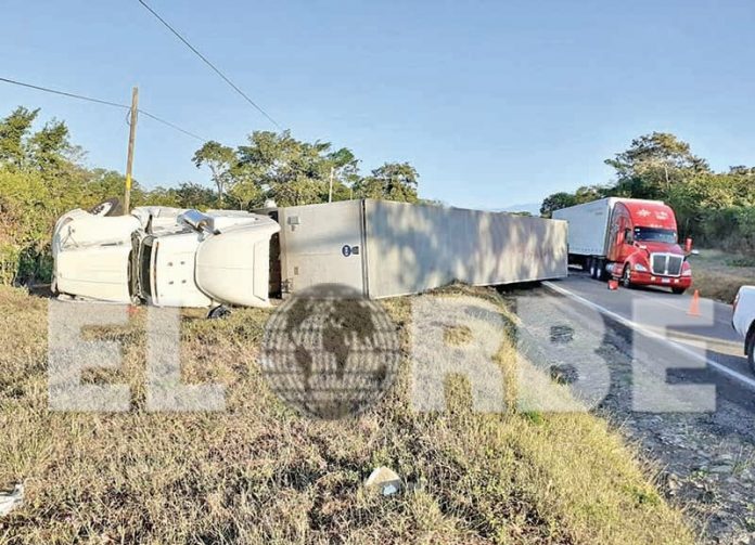 Mapastepec, Chis.- Un tráiler cargado de arneses que se dirigía a la frontera con Guatemala volcó sobre el tramo carretero Mapastepec-Escuintla, dejando daños materiales por varios miles de pesos, aunque el conductor resultó ileso.