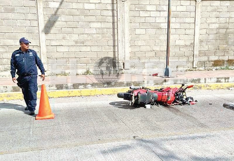 Tapachula, Chiapas; 16 de febrero.- El exceso de velocidad y la falta de precaución al conducir, fueron las causas principales por las que el conductor de una motocicleta, perdió el control de su unidad, derrapó y se estrelló contra la banqueta.