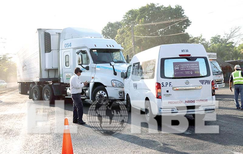 La colectiva afectada es Nissan de la ruta Huixtla-Tapachula. Cabe agregar que de no llegar a un arreglo en la reparación de los daños, las dos unidades serán turnadas ante el Ministerio Público del Fuero Común. EL ORBE / Roberto Corado Mosqueda