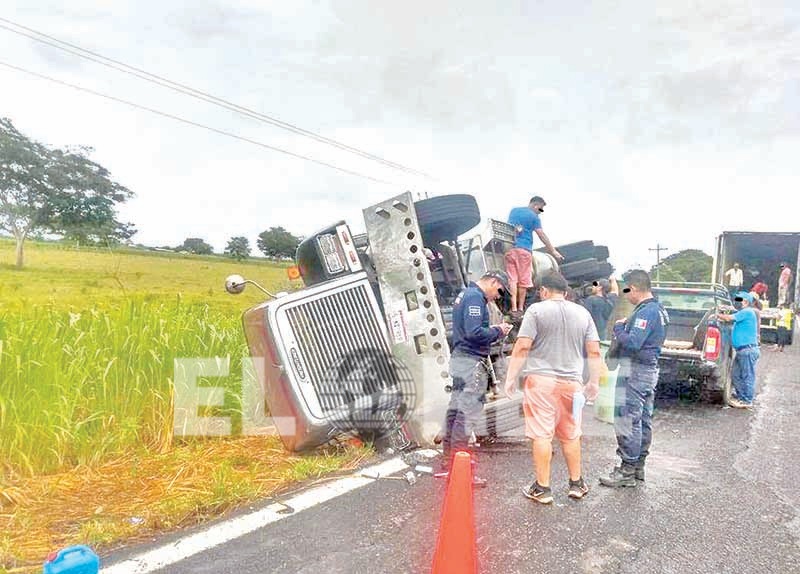 Los hechos ocurrieron al filo de las 12 horas, reportaron al Centro de Emergencia 911, que un tráiler había volcado. Elementos de la Policía arribaron al lugar y localizaron la unidad con placas 696 A-M. del estado de México, que jalaba una caja seca cargada con cajas de plátano.