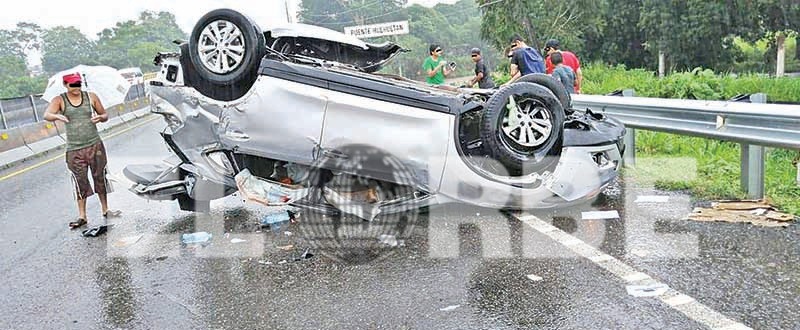 Un Nissan X-Trail de color gris con placas de circulación del estado de Chiapas, volcó en la vía y quedó sobre su toldo. Conductores que transitaban por el lugar, solicitaron la intervención de paramédicos y elementos policiacos para que se trasladaran al lugar a verificar este accidente.