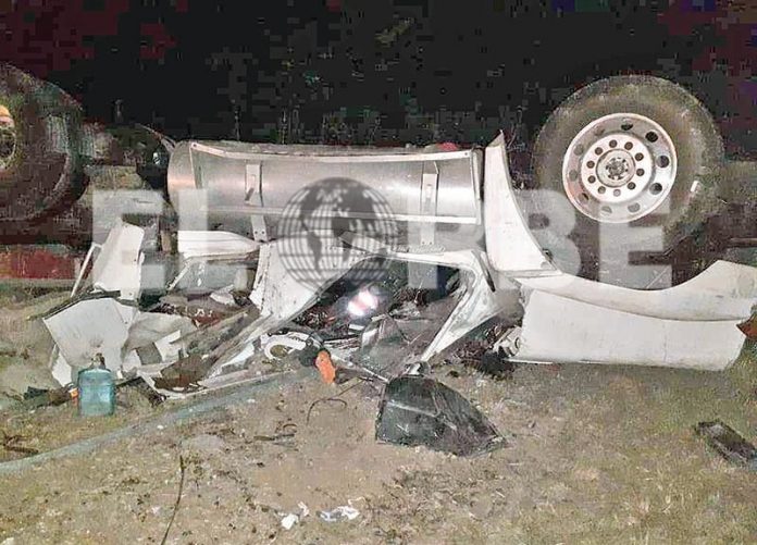 El conductor reconoció que lo venció el cansancio, se durmió y debido al exceso de velocidad, ya no pudo controlar al Freightliner con plataforma y placas del Servicio Público Federal. Quedó en manos de la Policía Federal de Caminos. Resultó Solo daños y lesiones en accidente de tránsito. EL ORBE / Luis Javier Ramos / Corresponsal