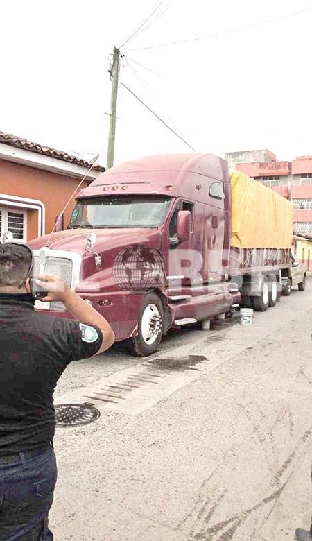 Huixtla, Chiapas; 4 de febrero.- Un tráiler se quedó sin combustible al sufrir daños en la manguera del ducto al cruzar los rieles de la vía del ferrocarril y en la zona urbana de esta ciudad. Tuvo que intervenir la Policía Municipal y Protección Civil.