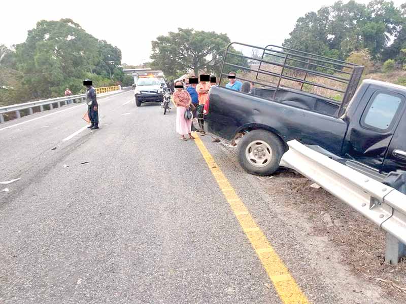 Tapachula, Chiapas; 27 de marzo.- Conductores que transitaban sobre el tramo carretero que conduce de Tapachula a Puerto Chiapas, tuvieron a la vista un fuerte accidente que se registró a la altura del fraccionamiento Jardines de Guadalupe o en el kilómetro 9+300.