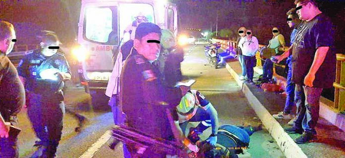 Tapachula, Chiapas; 10 de abril.- Paramédicos de la Cruz Roja Mexicana, atendieron a una mujer que se encontraba a la orilla de la carretera Tapachula a Tuxtla Chico, a la altura del puente Cahoacán, ya que presuntamente fue atropellada.