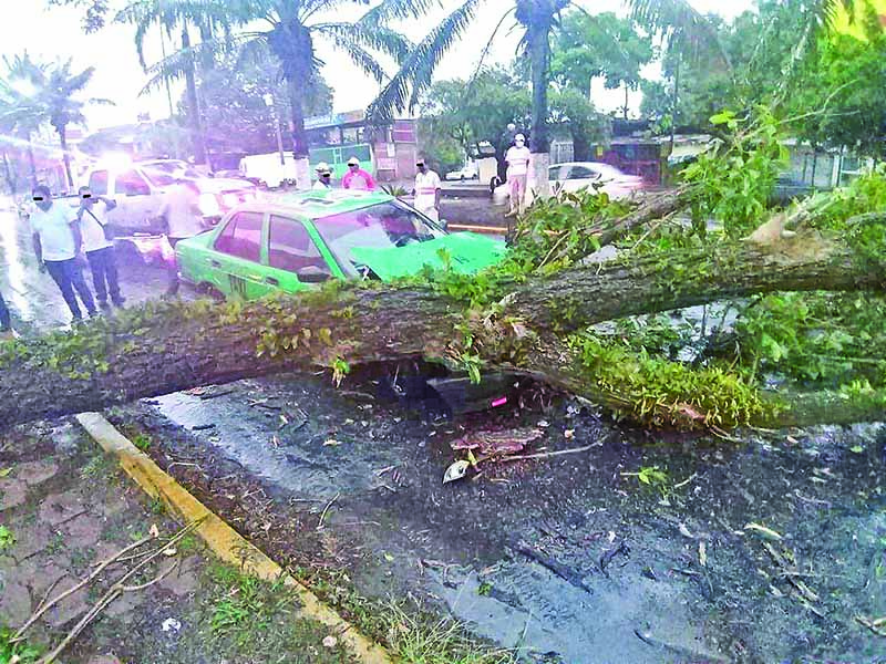 Tapachula, Chiapas; 24 de abril.- Con daños materiales resultó un taxi de ruta foránea, cuando un árbol le cayó encima, los hechos se dieron sobre el boulevard Díaz Ordaz, como referencia frente a Soriana. En el lugar nadie resultó lesionado.