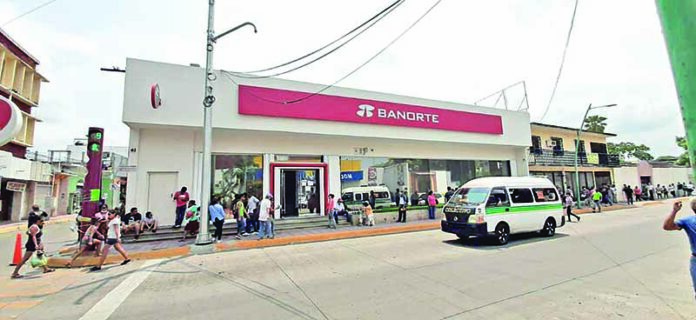 La persona afectada explicó que el pasado domingo acudió al banco Banorte para retirar dinero, pero se percató que no había efectivo en los cajeros e intentó salir del banco.