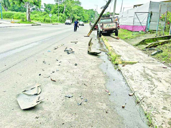 Tapachula, Chiapas; 21 de junio.- El conductor de una camioneta Pick Up de modelo atrasado, transitaba sobre el boulevard Akishino, pero al perder el control de su unidad, se estrelló contra un poste de madera propiedad de Telmex y lo derribó desde su base.