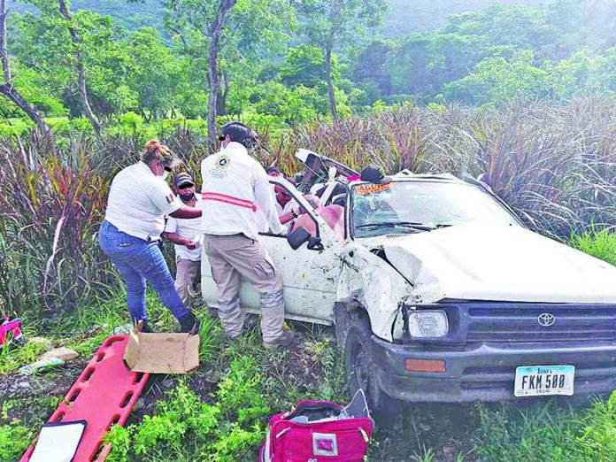 Los hechos ocurrieron alrededor de las 09:00 horas, cuando una camioneta Toyota, color blanco, con laminillas FKM-500 de Dallas, manejada por Carlos “N” de 68 años, quien dijo vivir en San Diego California, se salió de la vía.