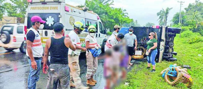 Esta persona dio a conocer que en el mismo vehículo viajaban 3 menores, que presentaron pequeñas contusiones, no se logró saber los nombres ya que se retiraron del lugar con su papá.
