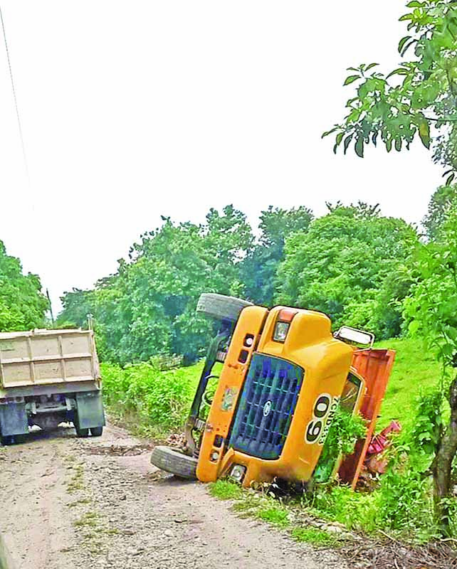 Alrededor de las 13:00 horas, el conductor de un camión Ford Volteo de color amarillo, volcó cuando circulaba desde el municipio de Mapastepec con destino a la colonia 8 de Septiembre; todo se debió al mal estado del camino, presuntamente el conductor perdió el control del volante y se dio el percance.