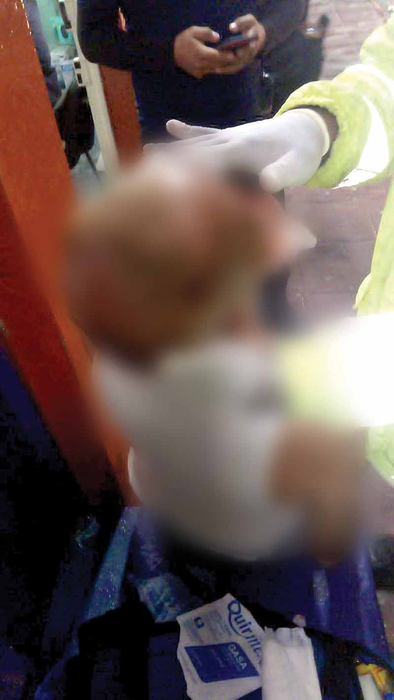 Florentino “N” de 85 años de edad, presentaba una herida de aproximadamente 5 centímetros en la frente y una herida más en la cabeza del lado derecho.