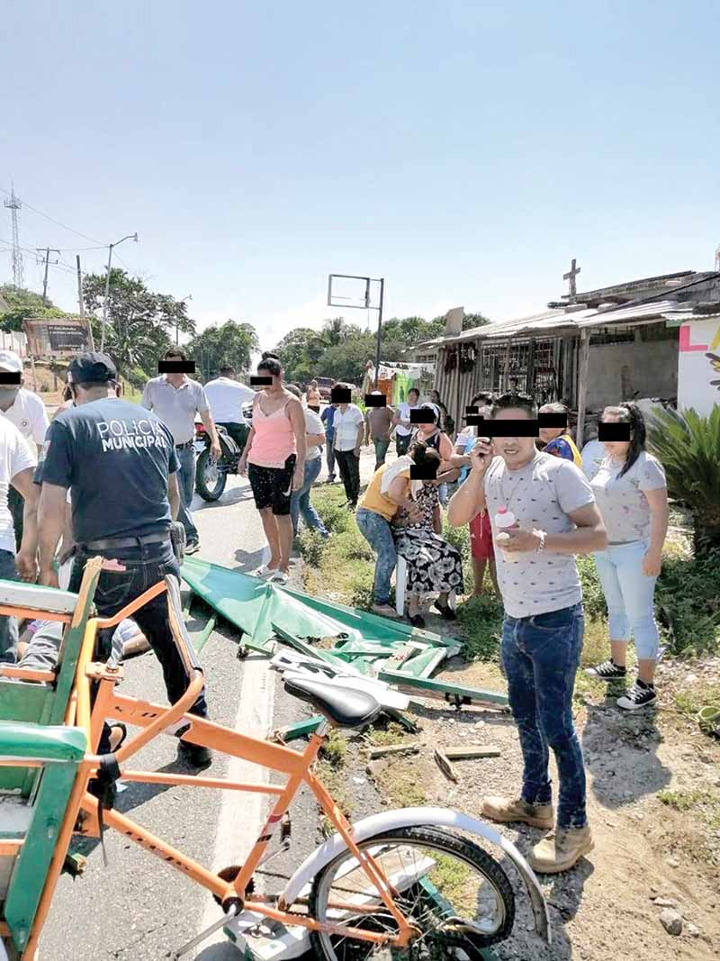 Los lesionados fueron llevados al hospital de Huixtla y lamentablemente fallecieron las dos féminas horas después. El triciclero aún está entre la vida y la muerte. La Guardia Nacional Vial y Tránsito del Estado, pusieron el caso ante la fiscalía del Ministerio Público por los delitos de lesiones, daños y doble homicidio en accidente de tránsito en Villa Comaltitlán. EL ORBE / Luis Javier Ramos / Corresponsal