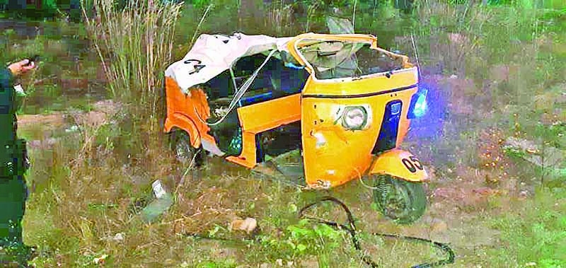 De acuerdo con los datos obtenidos, una pareja viajaba a bordo de un mototaxi con número económico 04, cuando al tomar la curva que se ubica en la entrada y salida del puente, el conductor perdió el control del volante, salió de la carretera y terminó volcándose.