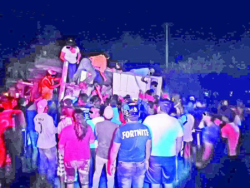 Mientras que los oficiales poco pudieron hacer a su llegada, ya que la turba al percatarse que la caja seca estaba rota, aprovechó para ingresar y comenzó a descargar, que en menos de dos horas logró vaciar el coloso.