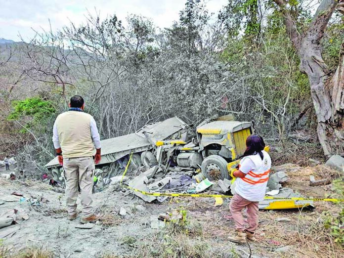 Al llegar los socorristas, observaron en el fondo de un barranco, un tráiler con cabina que circulaba cargado de cerca de 30 mil kilos de cemento, al bajarse a observar la escena encontraron entre las bolsas rotas, el cadáver de quien presuntamente conducía.