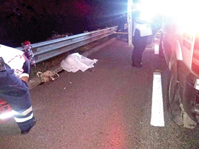 Al parecer, el conductor de un vehículo del cual se desconoce sus características, golpeó por alcance a la motocicleta en la que viajaban y terminaron proyectados contra las bandas metálicas de protección, resultando lesionado el conductor y falleciendo su esposa y pasajera.