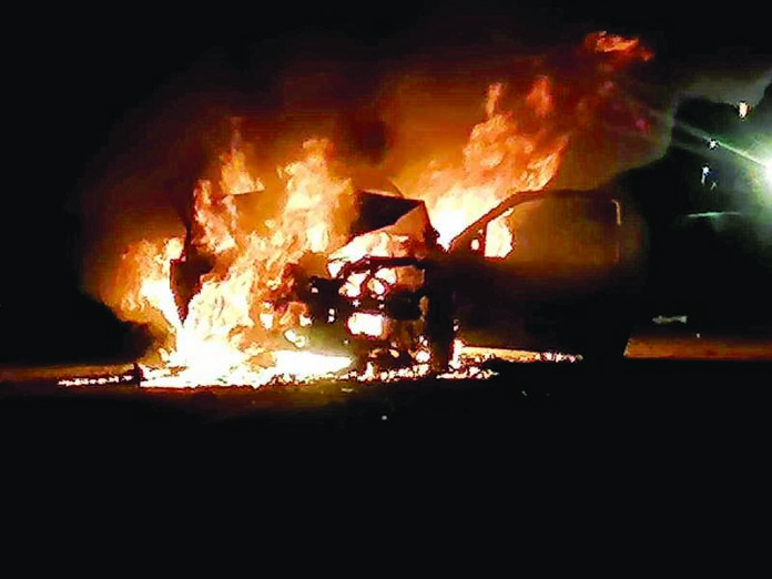 Jiquipilas, Chiapas.- Un accidente ocurrió sobre el tramo Cintalapa-Jiquipilas, cerca del puente Las Flores y dejó como resultado personas lesionadas, una camioneta dañada y un vehículo calcinado. Pasadas las 20 horas el 911 recibió el reporte de que a la altura del kilómetro 93 había un percance e incendio.