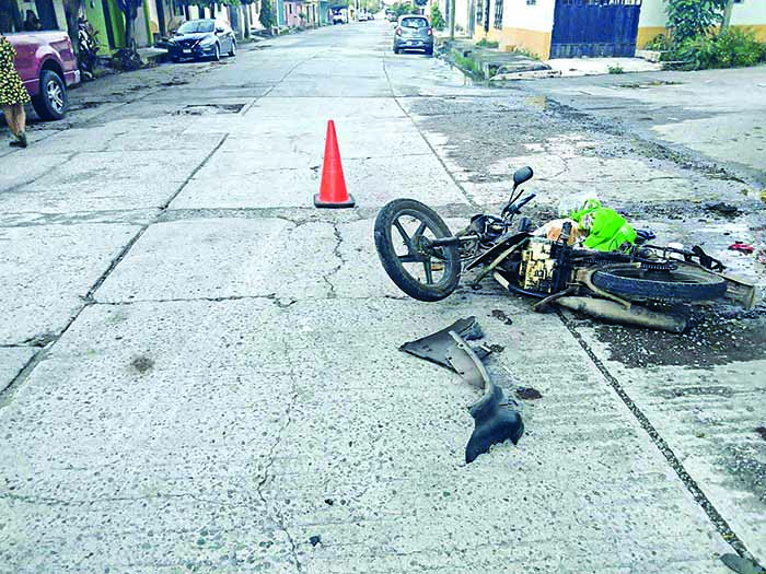 El perito de Tránsito del Estado, comentó que en este accidente se vieron involucrados un taxi local de número económico 1179, Nissan Tsuru con placas de circulación del estado de Chiapas. La unidad presentó un golpe en la parte delantera, al estrellarse la Italika con placas de circulación del estado de Chiapas. EL ORBE / Roberto Corado Mosqueda