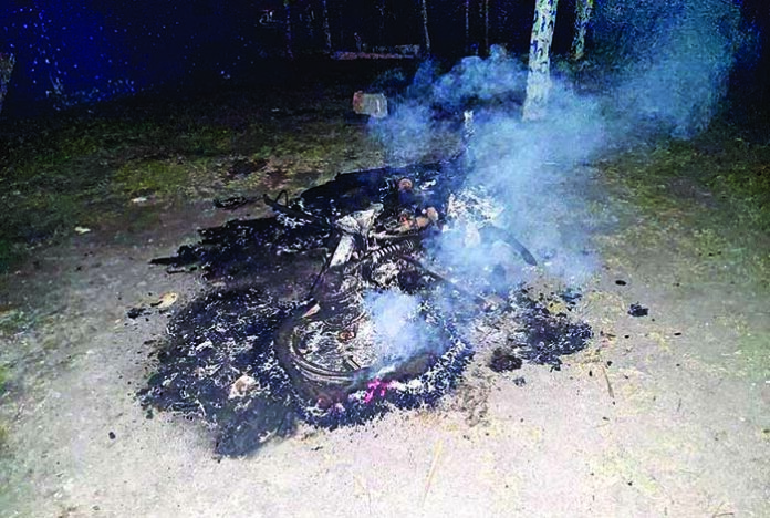 Tapachula, Chiapas; 4 de julio.- Vecinos del salón de fiestas y eventos especiales “27 de Marzo”, que se ubica en Playa San Benito, solicitaron al 911 Emergencias C-5, la pronta intervención de las diferentes corporaciones policiacas, reportaban que aproximadamente a las 00:10 horas varias personas habían sido asaltadas y despojadas de su motocicleta. Cuando el ratero intentó poner en marcha la unidad, se incendió y nada pudo hacer para apagar el fuego.