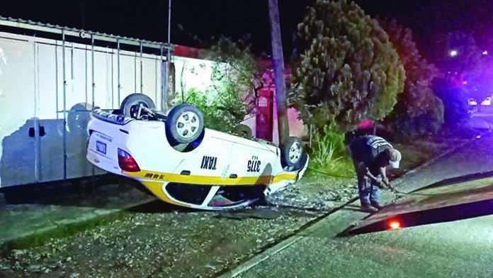 Elementos policiacos tomaron conocimiento a las 02:30 horas y al llegar a unos metros del Libramiento Sur localizaron el taxi Chevrolet Aveo, con número económico 3775 volcado. En el interior se encontraba el chofer bajo los influjos del alcohol, con el brazo izquierdo completamente fracturado.