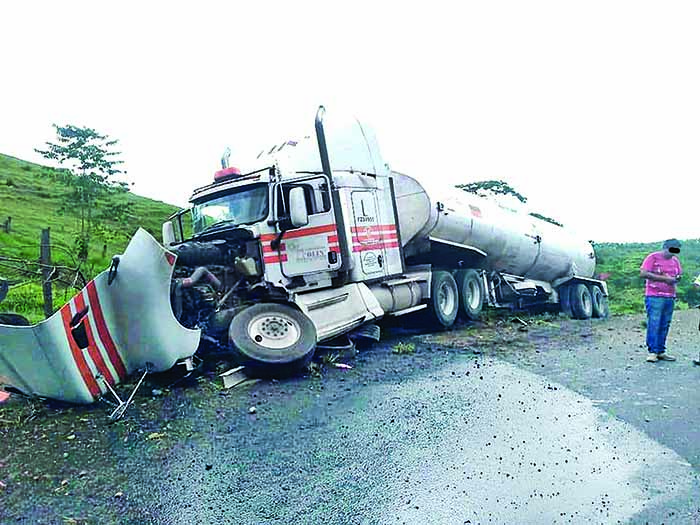 Ocozocoautla, Chiapas.- Derramamiento de combustible y destrucción del muro de contención y de la barra metálica, fue el saldo del accidente de una pipa que transitaba cargada con diesel hacia la capital del estado, procedía de la ciudad de Las Choapas, Veracruz.