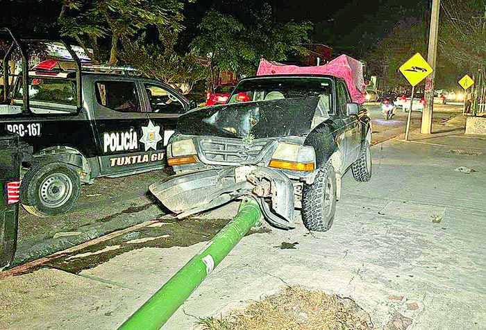 Según informaron los elementos policiacos, el accidente se registró a las 21:00 horas. En el lugar se encontró un vehículo accidentado. La unidad era una camioneta pick up Ford Ranger, con matrícula del estado de Chiapas, que terminó con el frente abollado al chocar contra el poste metálico y dejar en completa oscuridad al bulevar que comunica a varias colonias. La Pick Up fue remolcada al corralón del ayuntamiento por los daños que causó. EL ORBE / Rafael Jiménez / Corresponsal
