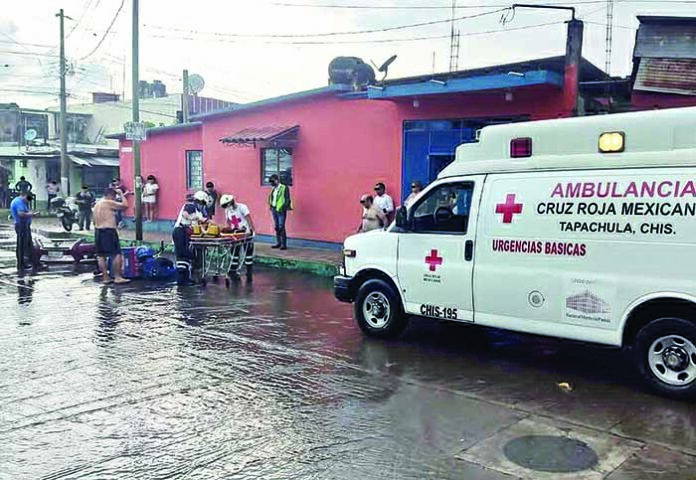 Tapachula, Chiapas; 31 de julio.- Paramédicos de la Cruz Roja Mexicana Delegación Tapachula, acudieron al fraccionamiento Las Vegas aproximadamente a las 18:00 horas, atendieron y valoraron a Luis “N” de 25 años de edad, que presentaba dolor en la pierna derecha, a la altura de la rodilla y tobillo. Lo trasladaron al hospital del IMSS. EL ORBE / Roberto Corado Mosqueda