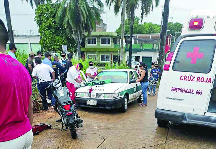 El que conducía la motocicleta, la escondió y al llegar Vialidad Municipal al levantar el peritaje, detuvieron al taxista y aseguraron la unidad que fue trasladada al corralón, para que “El Zarco” pague lesiones y daños. Uno de los lesionados fue trasladado a una clínica para recibir asistencia médica. EL ORBE / Luis Javier Ramos / Corresponsal