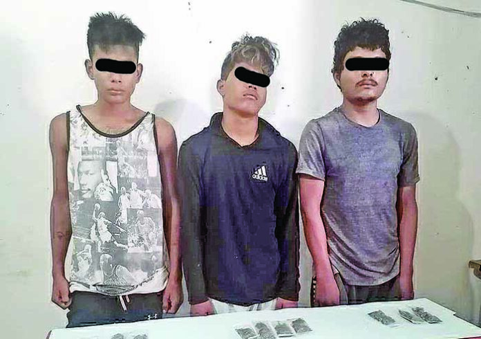 Huixtla, Chiapas; 5 de septiembre.- Por el delito de daños contra la salud, fueron detenidos tres sujetos, entre ellos un menor de edad. Fueron consignados ante la fiscalía del Ministerio Público de esta Ciudad.