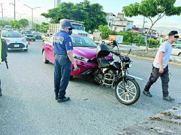 Se supo que el motociclista manejaba una Italika y circulaba de oriente a poniente sobre la dirección mencionada, cuando fue embestido por alcance por el automóvil Hyundai Río que era conducido por una mujer, quien al ver lo sucedido se hizo responsable del joven herido y de los daños que le causó a la moto. EL ORBE/Rafael Jiménez