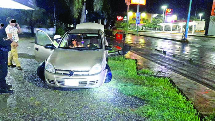 Alrededor de las 02:00 horas, el conductor de un automóvil Volkswagen de color azul con placas del estado de Chiapas, iba de poniente a oriente sobre el boulevard Díaz Ordaz y al llegar a la altura del semáforo frente a Soriana, el chofer le pegó a un Chevy Monza de color arena con placas del estado de Chiapas; resultaron con heridas dos personas.