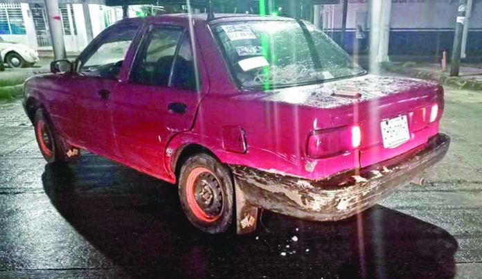 El carro afectado es un Nissan Tsuru de color rojo con placas de circulación del estado de Chiapas, conducido de oriente a poniente.
