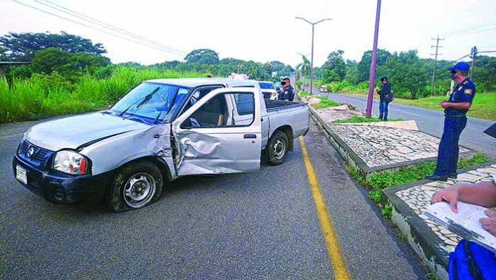 Tapachula, Chiapas; 3 de octubre.- Conductores que transitaban sobre la carretera costera, con dirección de Huixtla a Tapachula, al llegar frente las instalaciones de la empresa Infra, se percataron de una camioneta Nissan NP-300 de color gris, con placas del estado de Chiapas, repentinamente se proyectó contra el camellón central y se estrelló contra un poste de alumbrado público.