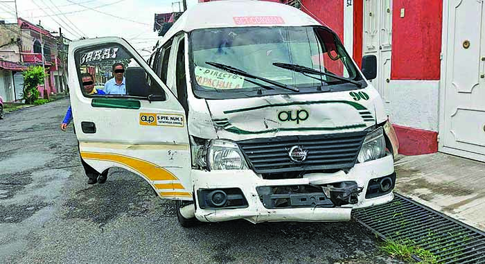 Alrededor de las 7 de la mañana cuando el conductor de un vehículo Peugeot de color blanco circulaba de oriente a poniente sobre la 9ª calle oriente y al llegar a la 5ª avenida norte no hizo alto total a la vía de preferencia y en su intento para cruzar, fue impactado por una colectiva Nissan Urvan de la ruta Tapachula – Cacahoatán con número económico 90, que venía de sur a norte sobre la 5ª con vía de preferencia.