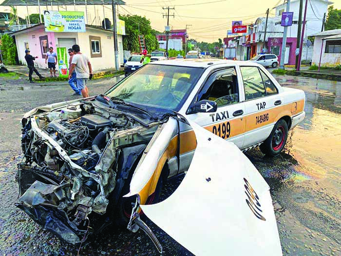 Resultaron dos personas lesionadas, que viajaban en la camioneta, esta unidad se colisionó contra un poste después de haber chocado contra el taxi.