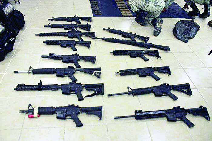 Tras hacer la revisión correspondiente, la GN aseguró 14 armas largas de uso exclusivo de las Fuerzas Armadas, 104 cargadores, tres mil 14 cartuchos útiles, así como equipo táctico y teléfonos celulares de diversas marcas y colores. Por estos hechos, los detenidos y lo asegurado fueron puestos a disposición del Ministerio Público de la Federación (MPF), quien ofreció los datos de prueba para obtener del Juez de Control la vinculación a proceso y la medida cautelar de prisión preventiva oficiosa, por los delitos mencionados.