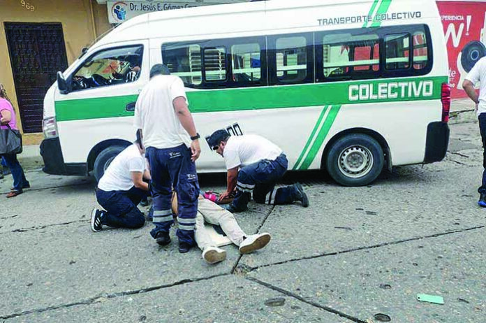 Tuxtla Gutiérrez.-Un peatón resultó con probables fracturas en diferentes partes de su cuerpo, luego de ser embestido por un colectivo cuando intentaba cruzar la calle de la 4ª Poniente, esquina con 10ª Sur, en la capital del estado durante la mañana de este martes.