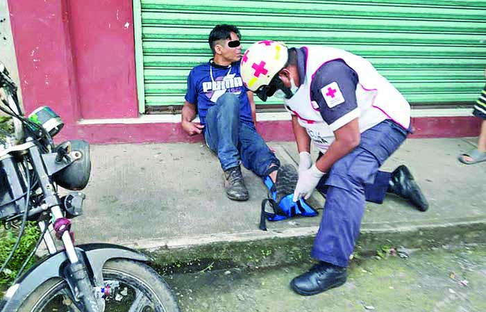 Tapachula, Chiapas; 24 de octubre.- Paramédicos de la Cruz Roja Mexicana Delegación Tapachula, aproximadamente a las 18:20 horas, fueron informados que se había registrado un accidente automovilístico en el callejón Belisario Domínguez, entre 8ª norte y 10ª norte. Paramédicos le brindaron los primeros auxilios a Rigoberto “N” de 34 años de edad.