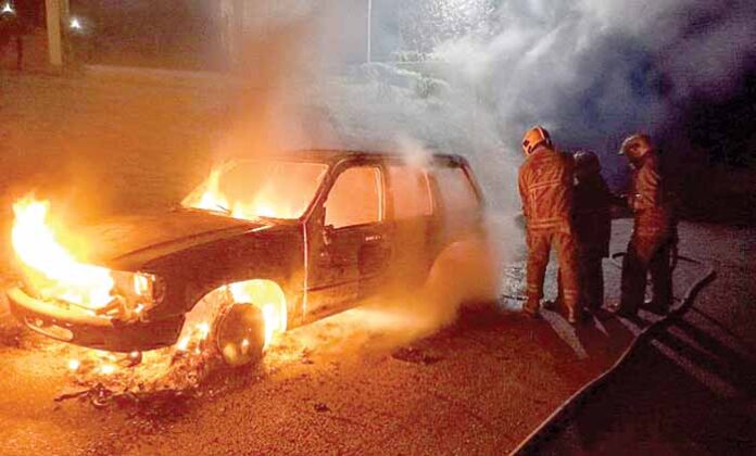 Mediante una llamada de emergencias 911, autoridades fueron informadas que un vehículo estaba envuelto en llamas y que el siniestro se había saldo de control, pues ni con extintores era posible controlar la situación.