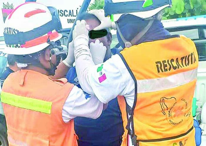Tapachula, Chiapas; 2 de noviembre.- Con una lesión en la ceja del lado izquierdo resultó un policía municipal, que recibió un golpe por un sujeto que era detenido e iba a ser presentado ante el Ministerio Público, al lugar acudieron paramédicos del grupo SAE que le brindaron los primeros auxilios.