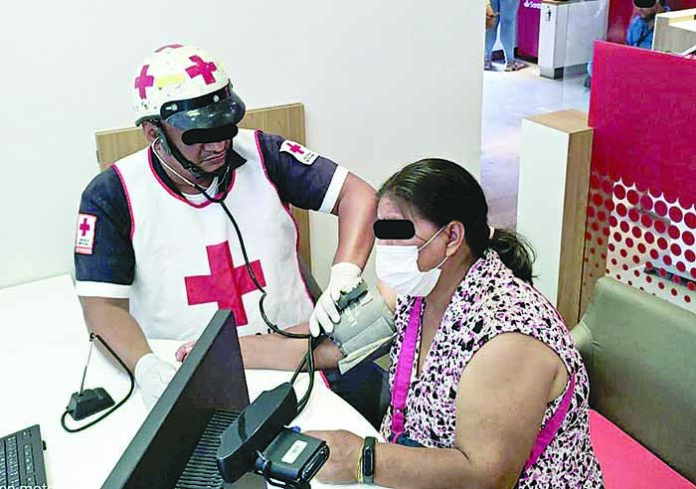 Aproximadamente a las 10:00 de la mañana llegaron al lugar y le brindaron los primeros auxilios a la paciente de nombre Claudia «N» de 40 Años, quien presentaba sus signos vitales fuera de los parámetros normales, pero agregó la paciente que ya había solicitado la presencia de su esposo para trasladarla con su médico personal. EL ORBE / Roberto Corado Mosqueda