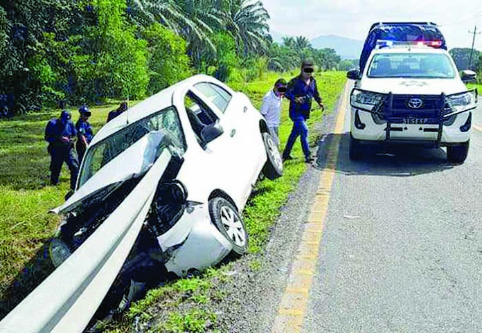 Villa Comaltitlán, Chiapas; 13 de noviembre.- Una persona que conducía a exceso de velocidad perdió el control de su vehículo y se estrelló de frente contra la barra metálica de seguridad, de la carretera, milagrosamente resultó ilesa.