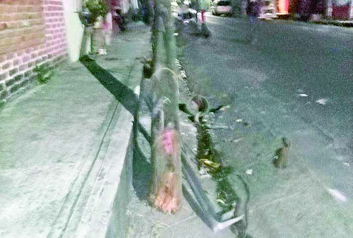 Los oficiales añadieron que en el lugar donde se encontraba el vehículo estacionado y dañado, había huellas de arrastre de una base de madera, de un poste de madera, propiedad de Teléfonos de México S.A. de C.V., que estaba derribado desde su base y únicamente pendiendo de los cables.