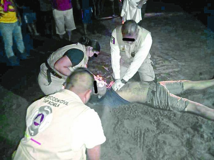 Tapachula, Chiapas; 20 de noviembre.- A las 18:00 horas del 19 de noviembre, palaperos y bañistas que se encontraban a la altura de la palapa “El Pelón”, en San Benito de Puerto Madero, reportaron al 911 Emergencias C-5 Escudo Urbano de Tapachula, que habían logrado rescatar a un joven del mar, pero estaba inconsciente.