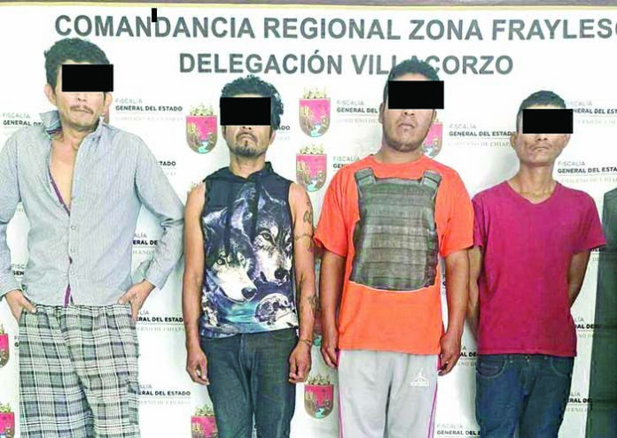 Este día, elementos de la Policía de Investigación, en coordinación con la Policía Municipal de Villa Corzo, detuvieron en flagrancia a Rodrigo «N», Rolando «N», Carlos Antonio «N» y Damián «N», como probables responsables del delito de Robo ejecutado con violencia y agravado. Los detenidos fueron puestos a disposición del Fiscal del Ministerio Público.