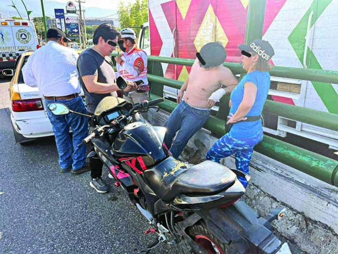 Se desconoce la identidad del lesionado, se presume que tiene alrededor de 28 años de edad y fue atendido por paramédicos de Protección Civil, sin necesitar ser trasladado a un hospital. La motocicleta quedó bajo el resguardo de los familiares que llegaron de inmediato al lugar de los hechos. EL ORBE / Rafael Jiménez / Corresponsal