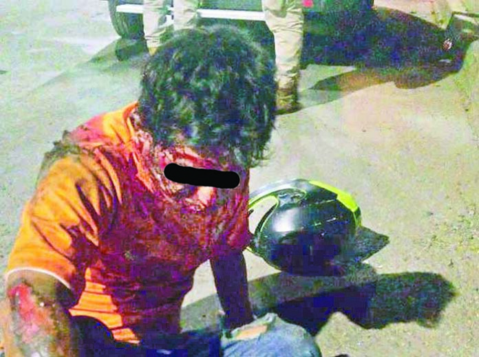 Tapachula, Chiapas; 06 de Diciembre.- Un motociclista que conducía su unidad a exceso de velocidad y al parecer bajo los efectos del alcohol derrapó con su motocicleta y resultó lesionado en el rostro y en diferentes partes del cuerpo.