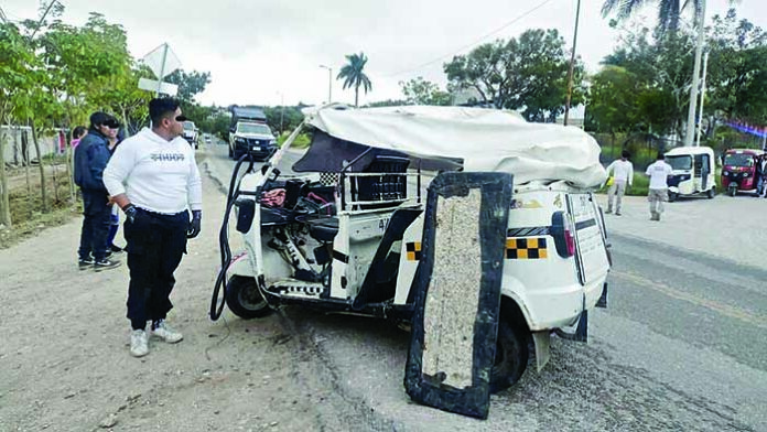 Trascendió que la unidad tipo mototaxi intentó cruzar la vía carretera sin que el chofer se percatara de que venía circulando sobre la vía rápida un automóvil tipo Mazda, por lo que el impacto fue inevitable.