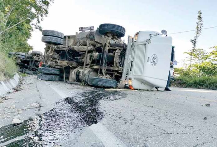 Ocosingo, Chiapas.- Durante más de tres horas se paralizó el tránsito en la carretera federal Palenque-Ocosingo, luego de que un equipo de grúas, salvamento y rescate realizaban la extracción de dos unidades siniestradas. Sobre esta vía de comunicación terrestre, en el tramo conocido como El Chimborazo, se registró el aparatoso accidente que tuvo como protagonistas a dos camiones de acarreo de material pétreo.